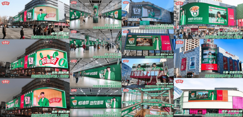 线下地广更是排面拉满,官宣日当天,拉面范点亮北京朝外the box、杭州西湖天幕两处超规格地标3d裸眼大屏和武汉地铁洪山广场站环绕式大屏,在全国26城35块商超大屏投放代言人tvc。此般铺天盖地立体式宣传触达人次超2000万,以线上 线下超高可见度,提振品牌全渠道士气,助力品牌再攀高峰。