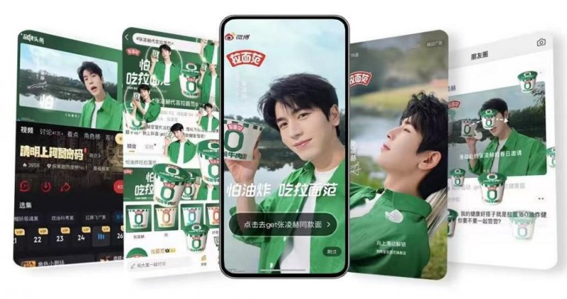 官宣日零点,拉面范以代言人本身的社媒声量作为切入点,在微博、抖音、朋友圈以及各大视频平台投放海量资源,通过互动落地与消费者建立沟通,让品牌形象更加立体。张凌赫×拉面范专属微博表情收获大批粉丝的喜爱与二创,并以其可爱形象成功破圈,引发泛娱乐粉丝受众的自发使用;在朋友圈,明星头像 首条评论的朋友圈广告展现形式,也吸引了年轻用户参与互动,将拉面范带入了更多泛受众视野。