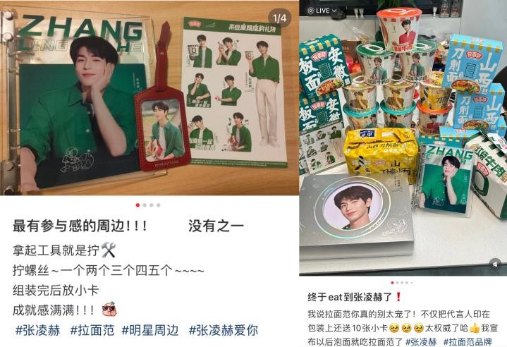 作为原以线上电商为主的快消速食,拉面范为本次官宣打造了全国20家拉面范x张凌赫主题专属“痛店”,给粉丝带来了线上 多维度的沉浸式活动体验,让粉丝感受到来自品牌的独家宠爱。各主题店通过墙贴、品牌专区打造、人型立牌、留言墙、购买产品送周边等多种形式,全面有效展示了新代言人,吸引粉丝与路人积极创作打卡图文,进一步助推品牌声量。