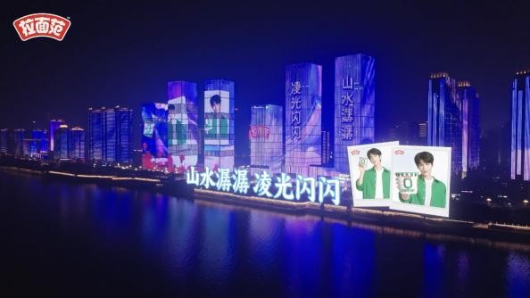 除了面向泛人群的丰富线上下资源,拉面范还为代言人粉丝精心准备了独家活动。官宣当天,拉面范快闪面馆落地横店探班代言人,为现场粉丝送上温暖好面。集装箱造型的超级面馆和近4米高的张凌赫人型立牌装置,成为现场百余名粉丝拍照打卡的热门焦点。更有独家重磅的长沙108栋灯光秀,助力代言人成为湘江一江两岸首位上屏艺人。官宣当晚7大组团108栋楼宇震撼点亮,不仅把湘江打造成张凌赫“痛江”,还准备了一场别开生面的游轮直播,邀请线上线下的粉丝一起共赏浪漫光影。拉面范以高频次的应援互动回馈粉丝,有效激发粉丝好感度,塑造亲民宠粉的品牌形象。
