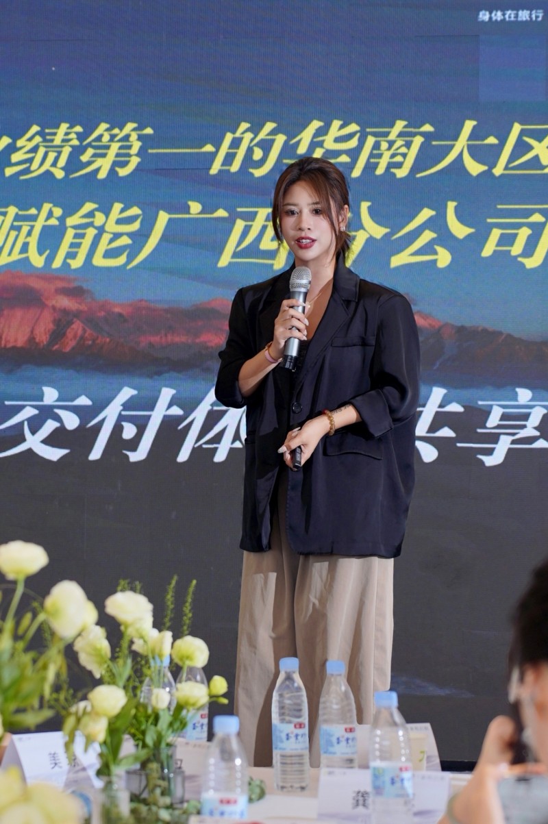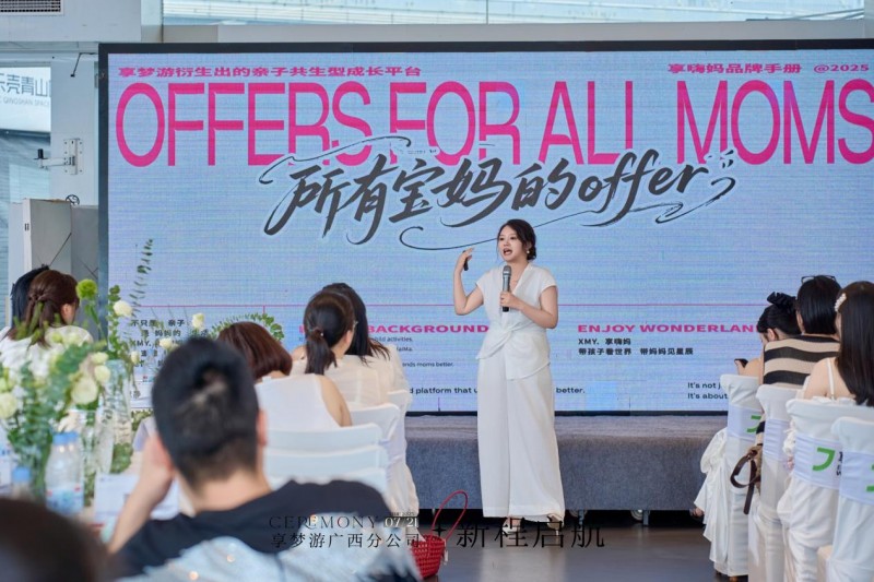 华南大区总经理徐钰盈(太阳)表达了对广西市场的坚定信心:“依托享梦游成熟的平台生态与广西团队的在地深耕,我们有能力让‘秀甲天下’的广西文旅资源焕发全新商业价值。”深耕亲子赛道的享嗨妈创始人彤彤也亲临现场,分享了宝贵的行业经验与赋能价值。