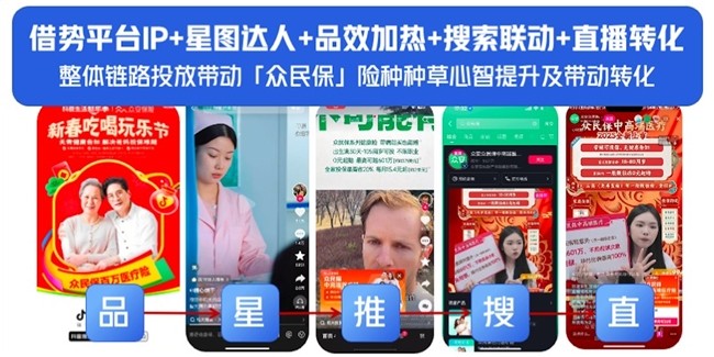 对于金融行业而言,产品面世初期的种草深度、起量能力,决定其整个生命周期的爆发力。2025年,众安保险推出的“众民保”正式上线开售,品牌借势平台ip和星图达人,完成品效加热、搜索联动、直播转化等一整套营销动作,快速提升了这一全新险种的全网认知。产品搜索量环比提升30倍,消耗增长率突破200%。
