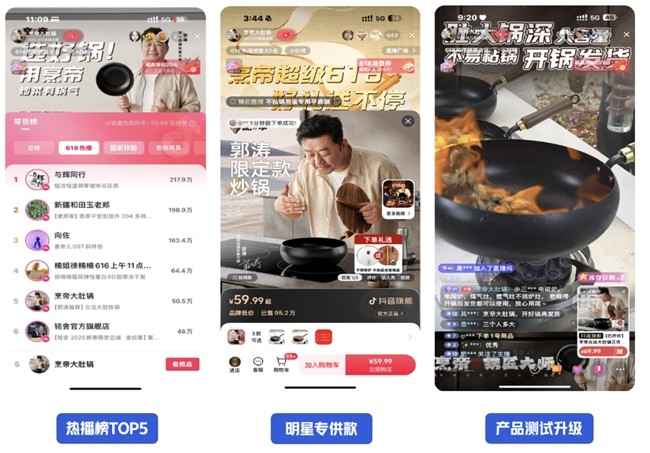 借力巨量千川,品牌不仅能够实现“节点”上的爆发,也能看见“长线”增长。作为家居百货行业的新锐品牌,烹帝通过明星代言、展播破圈、自播大场、产品上新等经营策略,不断扩大在抖音电商的生意规模。618大促期间,烹帝聚焦明星产品,全域放量追投;与此同时,落地体验感较强的明星大场,配合自播小场连续开播,不断加码千川投放增大品牌影响力,提升转化效率。活动期,商家gmv膨胀78%,市占率明显提升。