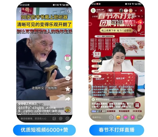 助听器品牌自然之声,也通过加深本地推链路探索,引爆春节节点增长。商家布局抖音团购的同时,融合了本地推线索投放和直播,挖掘银发人群用户,实现从线上至线下的引流,roi提升显著。