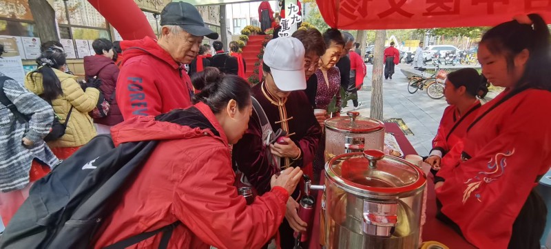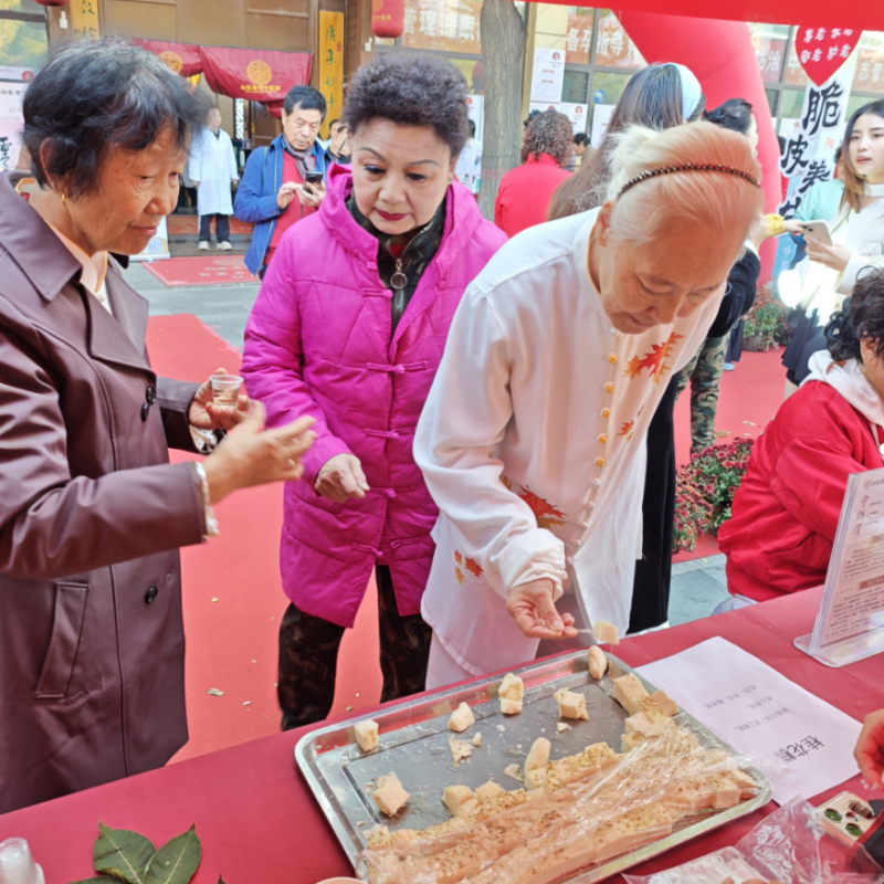 现场为市民免费提供精心制作的重阳糕软糯香甜,添加了桂花、枸杞、茯苓等药食同源的保健养生成份,还有清冽甘醇的菊花茶与菊花酒香气四溢,佩戴着寓意驱邪避灾的茱萸……这些延续千年的节日符号,不仅让老人们重温了记忆中的节日味道,更让年轻一代直观感受到了传统文化的魅力,生动诠释了新时代银发群体“老有所乐、老有所为”的积极风貌。