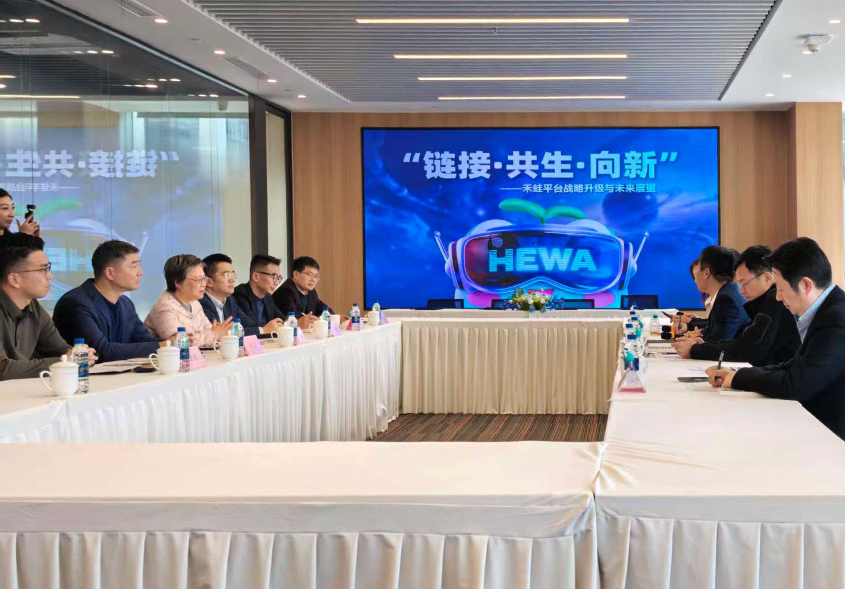 3月13日,禾蛙战略签约座谈会于陆家嘴数智港圆满举行。本次活动由科锐国际董事会秘书张宏伟主持。浦东新区人力资源和社会保障局党组书记、局长徐雯,浦东创投集团党委副书记、总经理门庆兵,上海陆家嘴互联网信息服务有限公司总经理黄亮,科锐国际董事长高勇,正德人力董事长管政,苏州展驰董事长缪珽等嘉宾莅临现场,共同见证这一重要时刻。