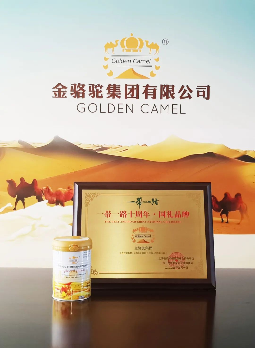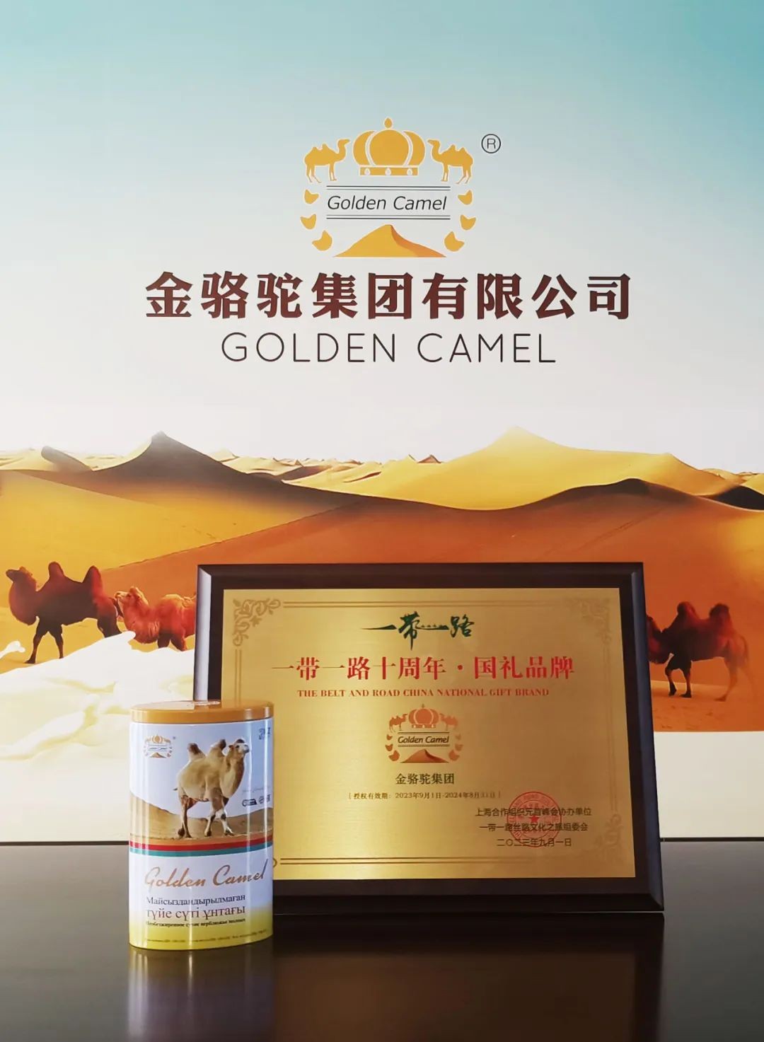 在“一带一路十周年?国礼品牌”活动中,“金骆驼”品牌荣获“一带一路十周年?国礼品牌”,以国礼身份,将高品质驼奶传送至全世界。
