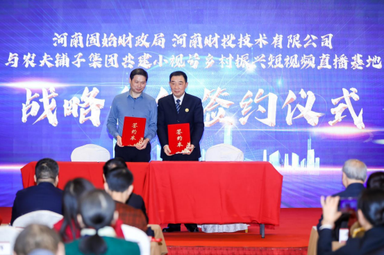 在本次大会上,河南省固始县财政局、河南投资技术有限公司与 农夫铺子集团发展有限公司共同签署了关于共建“小视号乡村振兴短 视频直播基地”的战略合作协议。这一签约仪式不仅标志着三方在乡 村振兴领域的深度合作,更是为了共同推动短视频直播技术在促进乡 村经济发展方面的广泛应用。