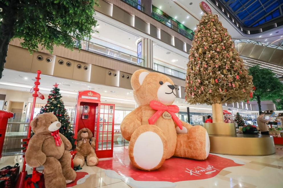 沈阳k11 select以“温暖年年”为题,现场布置一只3米高的拟真坐姿熊宝,并配有一棵挂满了超200只毛绒玩偶熊的金色圣诞树,吸引了众多市民前来打卡。