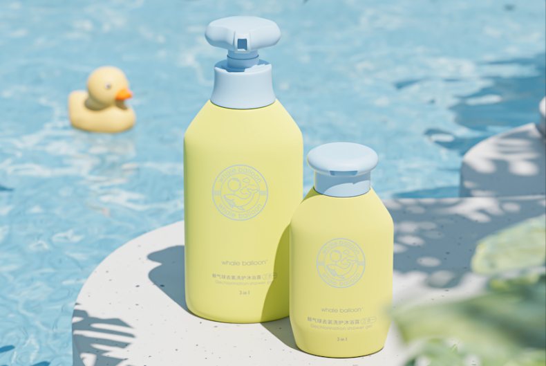 据有关数据显示,在中国95%以上的泳池均采用了含氯消毒剂对泳池水质进行消毒及卫生维护。符合国家卫生标准的泳池水质,正常是不会对身体造成直接损害的。但遗留在身上的残氯,如果不及时清洗干净还是会产生难闻的气味,有时还会引发皮肤干痒,甚至敏感;而水中的氯离子通常也会造成头发干枯褪色打结的情况。通过对283名长期参与游泳运动的青少年(7-14岁)运动员及家长、48名游泳俱乐部教练,围绕着泳池水况、皮肤头发状态、泳后清洁养护等问题,展开了一系列深度访谈及调研后,鲸气球「whale balloon」针对去氯、滋润、柔顺、味道、温和、安全性等多个开发纬度进行严格要求,并联合多位专业运动员、教练员亲自参与研发与测试,最终历经两年时间,推出首款产品「去氯大黄瓶」。