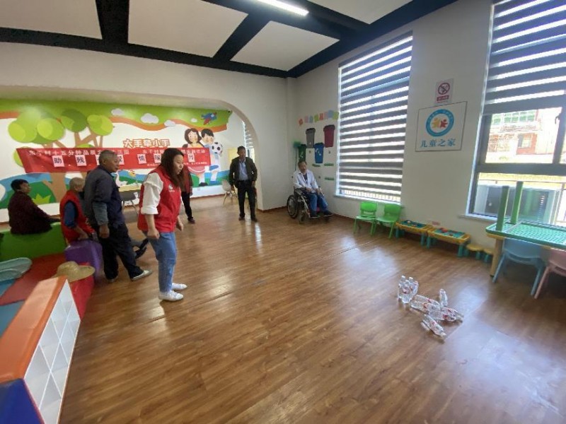 趣味活动形式多样、内容丰富,有夹弹珠及乒乓球、打保龄球、红领巾游戏和水杯吹乒乓球等游戏。本次比赛设置了团体赛与个人赛两类,两人为一组开展团队赛项目。个人赛则由参赛选手根据自身情况自由选择。值得一提的是,个人赛的比赛项目由社工针对不同残疾类别精心设计。“这些项目能从不同方面锻炼残疾人手部动作、肢体协调等能力。”本次活动还邀请志愿者一旁协助。下午一点在东千村文化礼堂拉开趣味活动的序幕,比赛中。大家热情高涨,场外此起彼伏的加油呐声也让气氛更加火热。