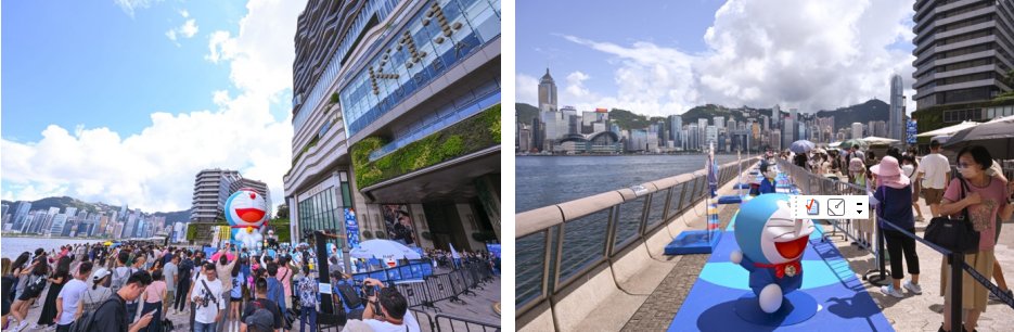 这个夏天,k11文化艺术区victoria dockside再度成为大型盛事全球首秀的舞台,迎来备受瞩目的《100%多啦a梦& friends》巡回特展的全球首展。多啦a梦与一众好友已于7月13日登陆星光大道,并展出全球最高,高达12米的多啦a 梦充气雕塑,将尖沙咀海边装扮成充满童趣的奇幻世界。整个活动区域令这一风靡全球的漫画人物再掀热潮。开幕首周末,位于victoria dockside核心地带的文化零售地标k11 musea客流环比大升30%,而游客销售额环比急升60%;餐饮﹑时装﹑体育及电子产品品类的消售额环比增长四至五成,部份餐厅营业额环比更录得翻倍增长。