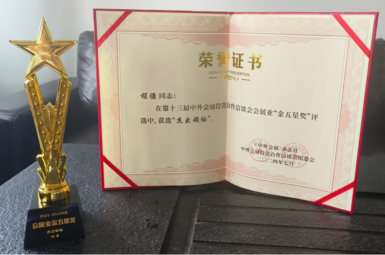 作为会展业最权威的全国性奖项之一,“金五星奖”的评选过程严谨公正,由业内权威专家、学者和资深从业者组成的评审团队,根据严格的标准和程序进行评选。据悉,全国仅有6位因贡献卓越获此殊荣。而程谦先生作为其中之一,充分显示了其个人的行业影响力这个奖项的含金量。
