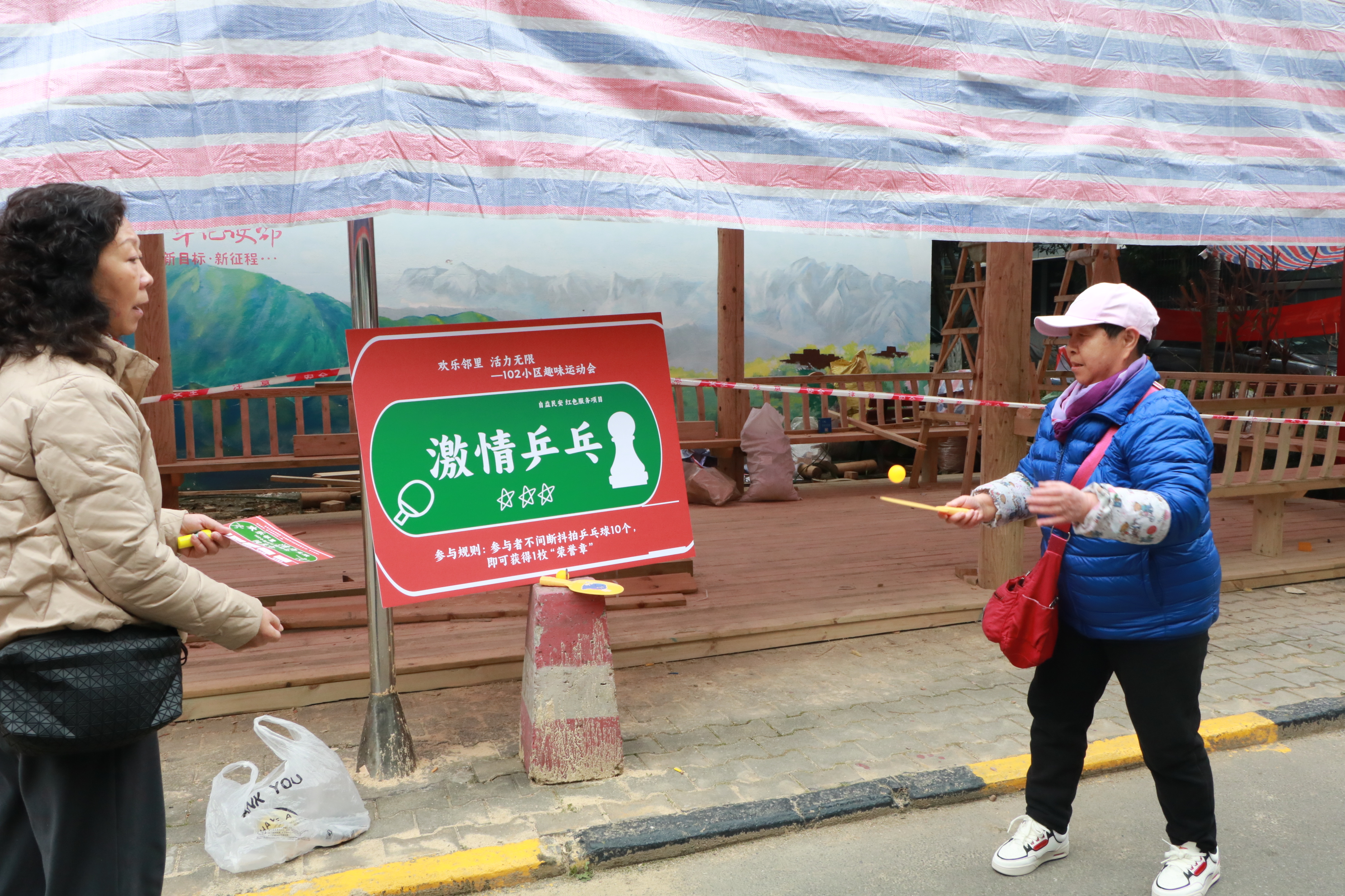 在 “激情乒乓” 项目处,参与者们全神贯注,努力不间断抖拍乒乓球。一位阿姨眼神坚定,手臂有节奏地摆动,成功抖拍 10 个乒乓球后,兴奋地领取了 “荣誉章”,周围居民纷纷为他鼓掌叫好。