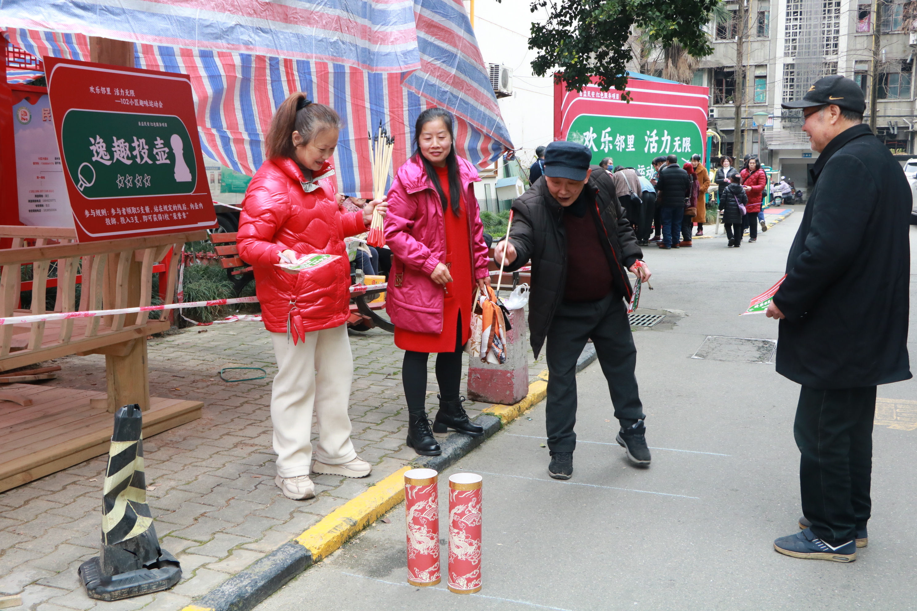 “逸趣投壶” 区,大家手持 5 支箭,站在规定线后,屏气凝神,瞄准壶口投掷。李大爷经验丰富,姿势标准,轻松投入 3 支箭,赢得周围居民的阵阵赞叹。不少小朋友也在家长的鼓励下参与其中,虽然投中的次数不多,但他们玩得不亦乐乎,现场充满欢声笑语。