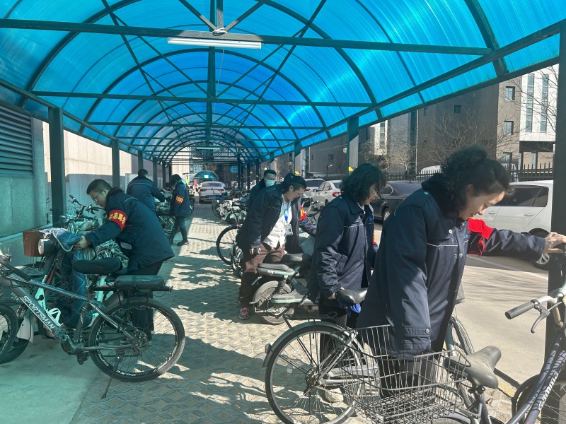 分公司团委组织青年同志来到自行车棚,扫除积雪,将地面卫生打扫干净;将所有自行车辆摆放整齐。大家分工明确,配合默契,车棚变得整洁有序,同志们都很高兴。