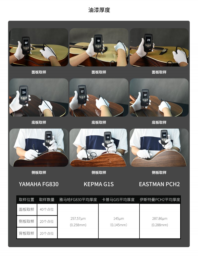 (以下数据基于单把吉他人工测量,不做绝对评估,请自行参考。)