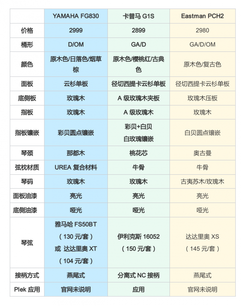 三者都采用了西提卡云杉单板,在处理工艺上也都不愧为大厂,处理方式各有千秋。