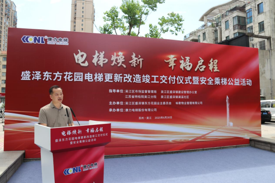 康力电梯苏州分公司总经理孙彬回顾东方花园电梯焕新的全过程,这是政府、业主、物业、康力多方共同努力的“民生”成果,他作出郑重承诺:秉承“安全第一、服务至上”的原则,康力服务团队会持续提升技术水平和服务质量,为居民带来更加安全、可靠、舒适的“乘梯生活”。