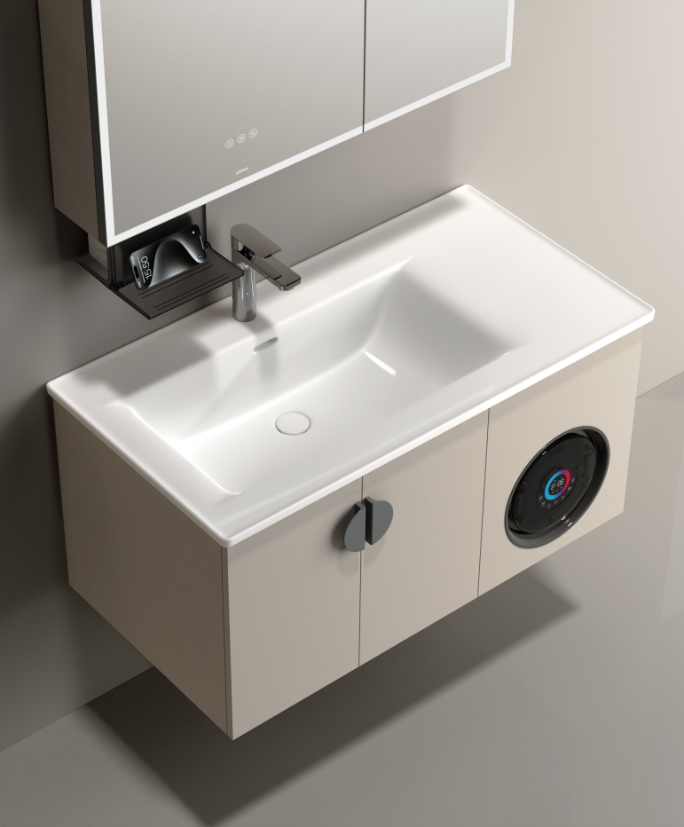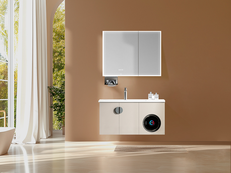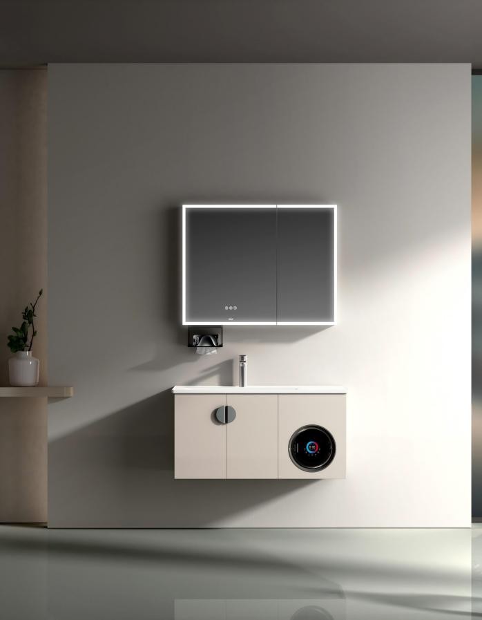 缦珂系列创新性地将滚筒洗烘一体机高效整合于浴室柜中,巧妙化解小户型空间难题。告别传统洗衣机单独摆放的占地困扰,在满足洗漱、收纳核心需求的同时,轻松完成贴身衣物的清洗与烘干。