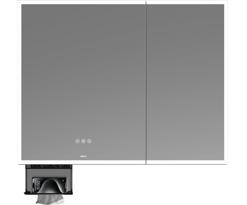 镜门后精心设计的多功能收纳空间,内部分区合理,大小各异的隔层,满足了各种物品的收纳需求。翻转式纸巾架,抽纸孔取纸,抽取更便捷,同时还能放置临时物品,如手机和眼镜等,便于洗漱时的各种放置需求。