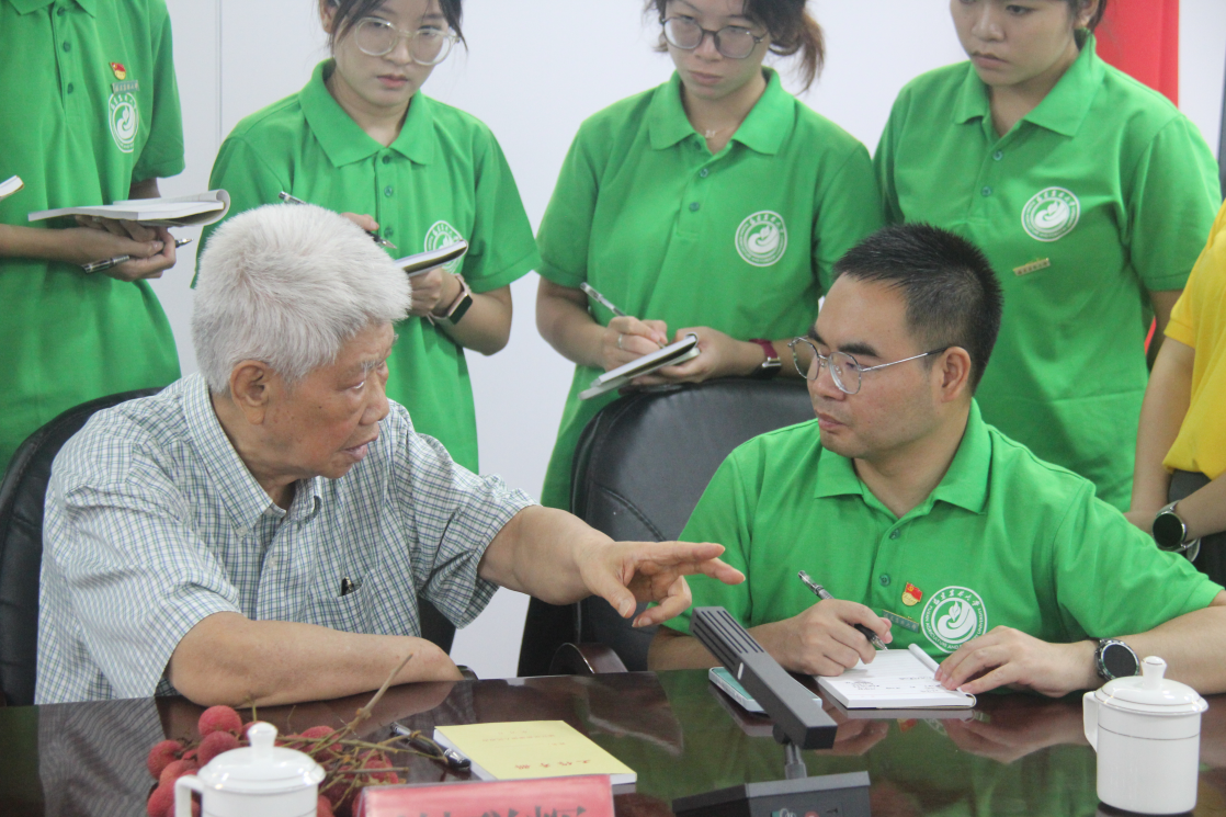 图为谢联辉院士(左)为”薪火传耕“研究生乡村振兴服务团讲解访谈(薛煜凡 供图)