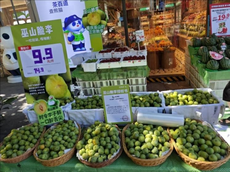 7月山城,热浪翻滚。作为重庆巴渝特色名优“金名片”之一,巫山脆李在这个夏天,已陆续上架百果园、重百新世纪、果琳、巴味渝珍等百余个直营门店,与重庆本土优质零售渠道深化合作,通过广泛的销售网络和强大的市场影响力,将巫山脆李推向更多消费群体。