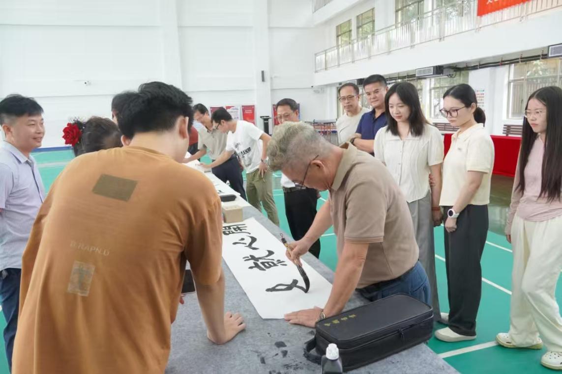 汕尾市书法家协会主席陈显伦率先提笔,以沉稳有力的笔触写下“文艺赋能百千万”,这一主题性作品刚劲雄浑,点明了此次活动的核心意义,引得在场群众纷纷称赞;还有书法家应群众之邀写下“大展宏图”,字体舒展大气,寄托着大家对未来生活的美好憧憬。这场互动性极强的志愿活动,让华侨管理区新时代文明实践中心的 “文艺志愿服务基地” 招牌更加鲜活。