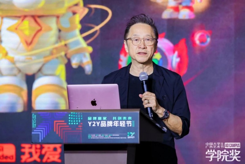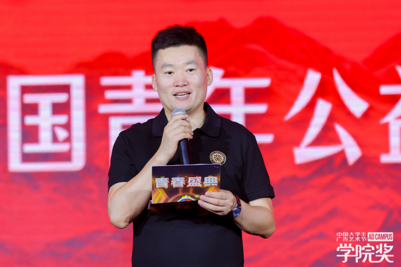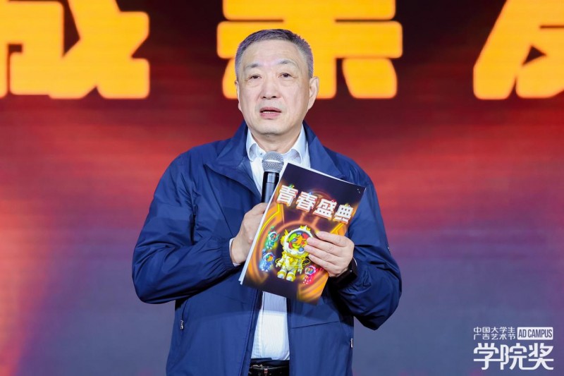 学院奖评审主席、上海师范大学教授、博导金定海老师致辞。他说:"广告无力撼动世界,却能重塑人们观照世界的视角;它无法颠覆客观价值,却可以重构大众的价值感。"金老师特别寄语青年创意人:"不要被技术工具束缚想象力,要敢于用年轻的视角解构常规,用创新的表达重建意义。"希望青年学子用广告的力量搭建品牌与公众的情感桥梁,在商业传播中实现创意的社会价值。