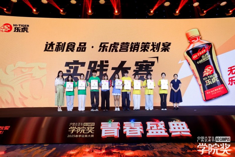 2025年,乐虎以“无困青春 乐虎能量”为主题,携手500ml瓶装乐虎,面向全国高校创新发起“乐虎营销策划案实践大赛”。在落地执行过程中,同学们深度结合体育、电竞、熬夜、舞蹈等需要能量的场景,紧扣品牌调性,和产品使用场景,在“玩”中学,将乐虎的品牌调性传达给更多年轻人。恩都瑞格(北京)广告传播有限公司ceo巴一先生带来赛事解读,并宣读“乐虎特等奖”最终结果,达利食品品牌方为创作团队颁发荣誉。