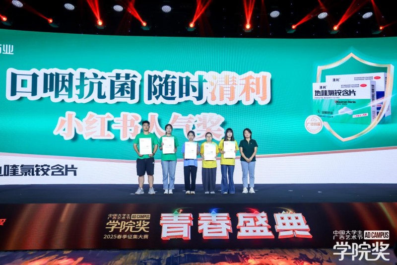 2025春季征集大赛,清利以“口咽抗菌,随时清利”为题,携手青年学子立足产品核心功能,结合生活化场景,用创意打破常规,为品牌注入鲜活能量,以青年洞察力重构品牌传播叙事。现场,华润双鹤药业品牌年轻化项目负责人韩大飞女士宣读最终结果,大国品牌新媒体事业部&品牌公关部总经理李墨女士为创作团队颁发荣誉。