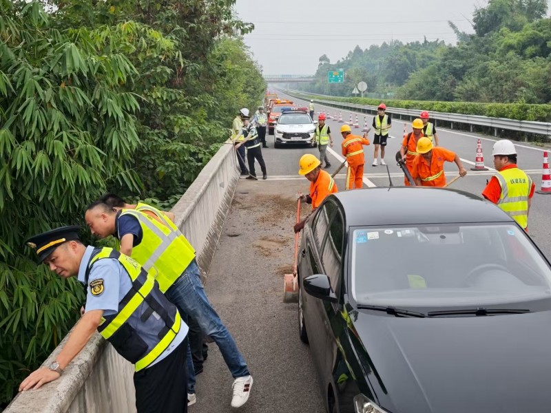 险情发生后,川渝两地交通执法、公安交警、运营公司迅速启动应急联动机制,按照“信息互通、资源共享、协调联动、高效处置”原则展开联合行动。高速交警第一时间实施交通管制,封闭受影响车道,开展远端分流,防止次生事故;交通执法人员迅速核查路产情况、上报信息、发布路况,并对桥梁周边进行安全管控;养护与救援队伍快速抵达现场,完成事故车辆拖移和路面清理;技术力量同步开展桥梁结构安全评估,确保通行安全。