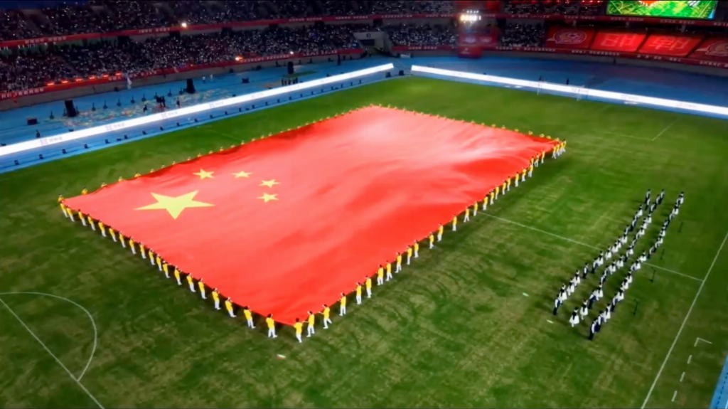 恰逢国庆,会场内3万观众共同合唱《我和我的祖国》、《歌唱祖国》等曲目,以及巨幅国旗tifo入场等表演,让整座体育场变成一片红色海洋,现场洋溢着爱国情怀以及高燃的凝聚力。