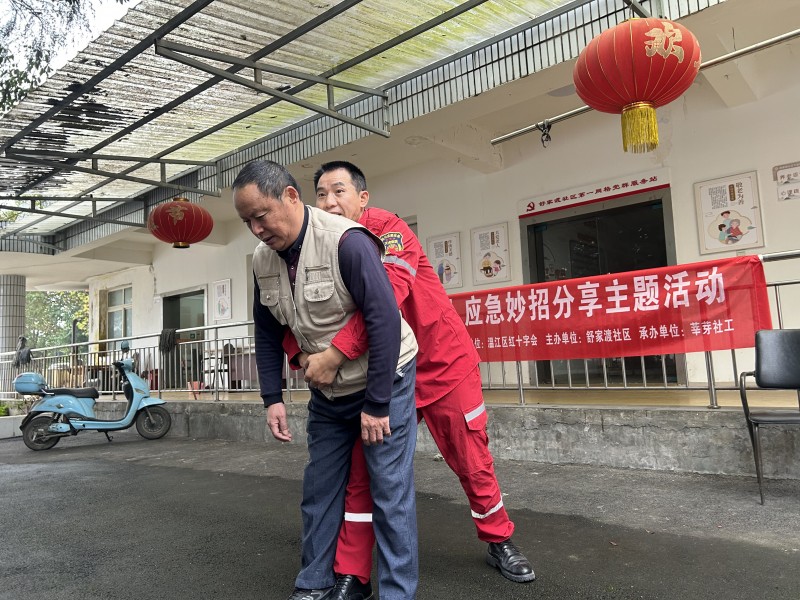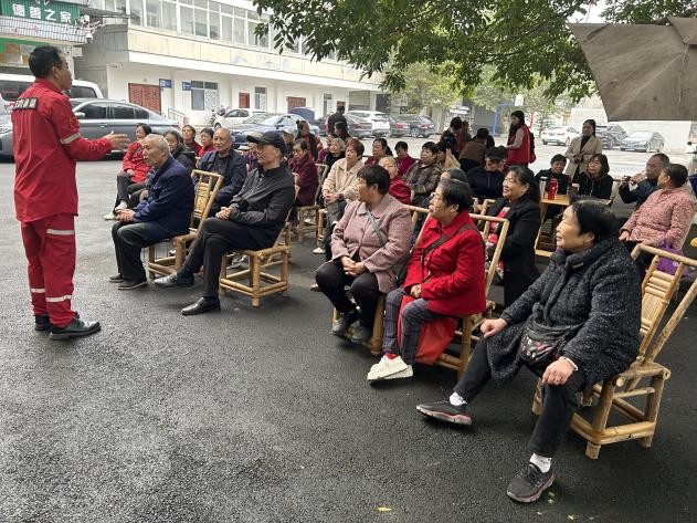 在日常生活中,老年人因身体机能衰退、信息渠道有限及固有生活习惯等因素,在面对突发灾害时往往更为脆弱。为提高社区长者的应急自救能力,筑牢安全防线,2025年10月28日,在温江区红十字会的支持下,由舒家渡社区主办,莘芽社工承办的“老物件新用法”应急妙招分享主题活动在社区为老服务站开展。本次活动特邀天虎救援队副队长左弟海担任主讲,围绕“身边物品应急用”这一主题,为老年居民带来了一堂生动实用的安全技能课。