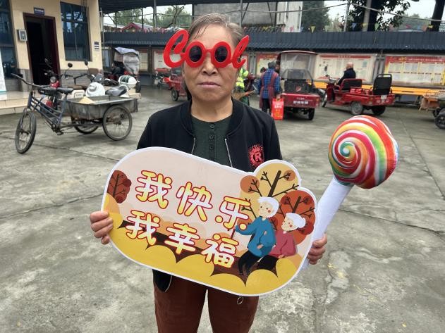 “重阳返老还童主题拍摄”成为活动现场的一大亮点。汉堡帽子、卡通眼镜、巨型棒棒糖等充满童趣的道具引得长者们跃跃欲试。大家或戴上俏皮的汉堡帽,或手持棒棒糖,在镜头前展露灿烂笑容。一张张洋溢着幸福的脸庞被瞬间定格,不仅记录了节日的欢乐,更承载着对美好生活的热爱。