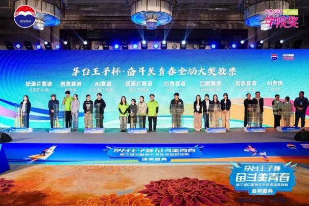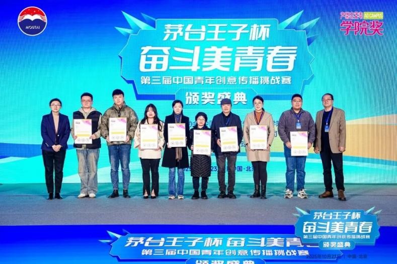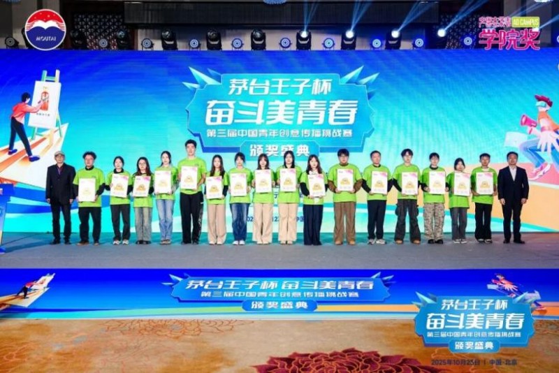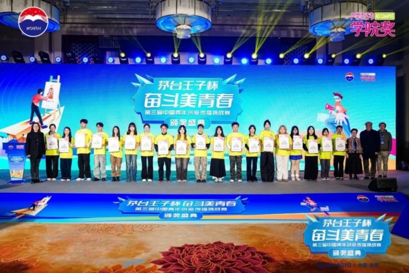 10月23日,茅台王子杯·奋斗美青春第三届中国青年创意传播挑战赛颁奖盛典于北京隆重举行。活动由茅台酱香芳华视频号、创意星球网、凤凰网、网易四大平台同步直播,线上与线下联动,累计触达观看人次达375万,共同见证青年创意与品牌精神的精彩交汇。