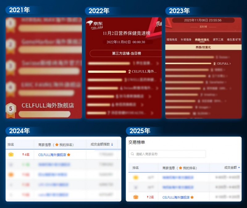 celfull赛立复今年双11主题为“科技御龄 悦享年轻”,寓意通过科学手段干预衰老,守护全生命周期的健康。自2021年起,赛立复已连续5年双11大促期间成领域前5品牌,用科研实力说话,在口服抗衰领域持续占据领先优势。