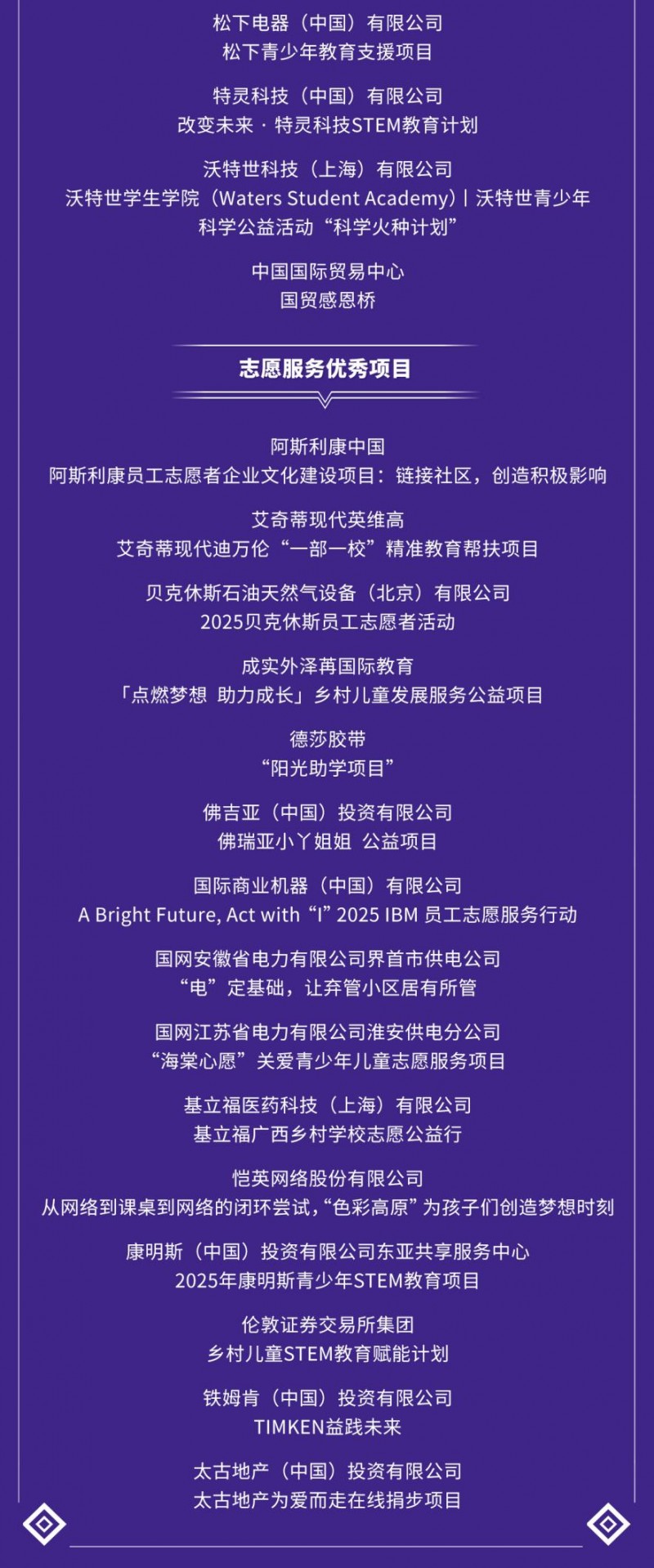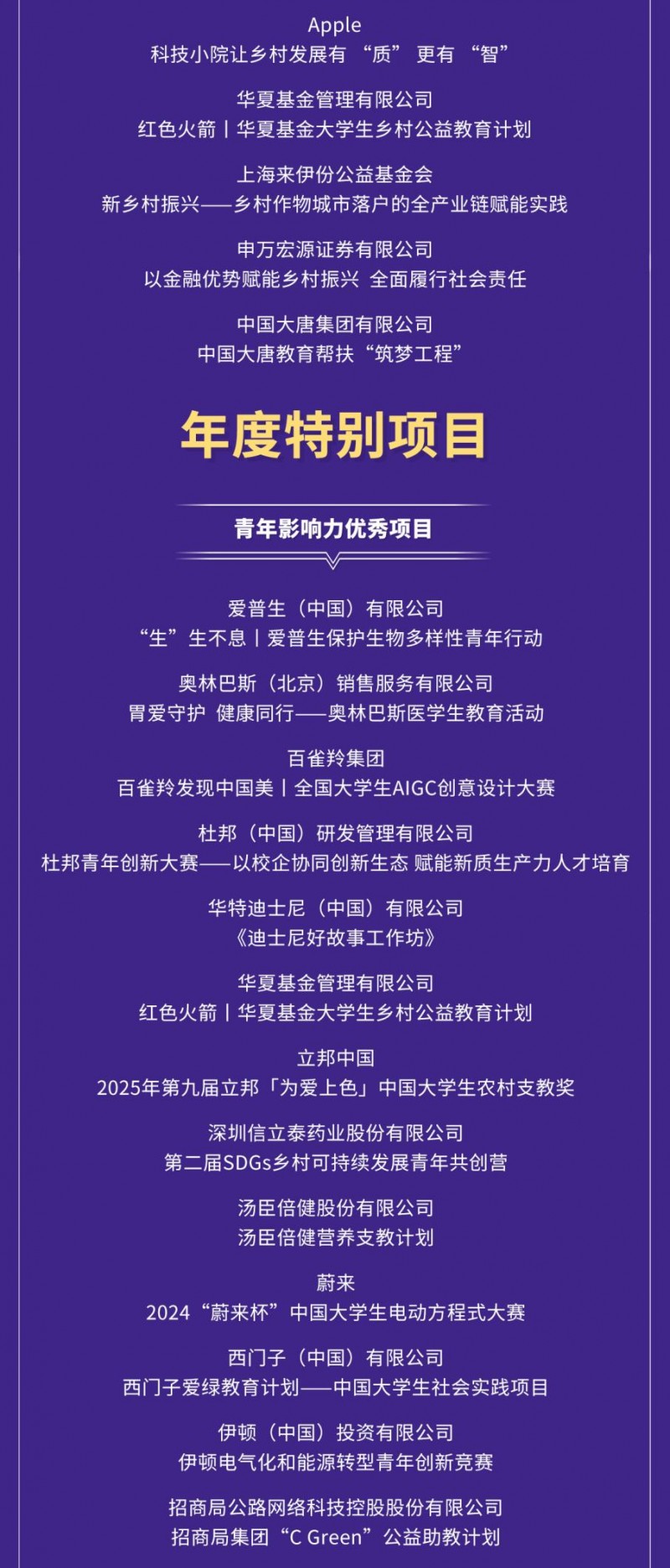 同期发布的《2025年csr中国教育榜优秀案例选编》收录了35家企业的38个优秀项目。《选编》将面向政府、行业、企业、高校、专业机构、媒体等相关方发布,深度触达4万 中外企业和500 中国顶级高校,直接影响超过400万职场青年和4,000万青年大学生,助力更多企业将csr/esg融入核心业务,共同探索责任创新的更多可能性。