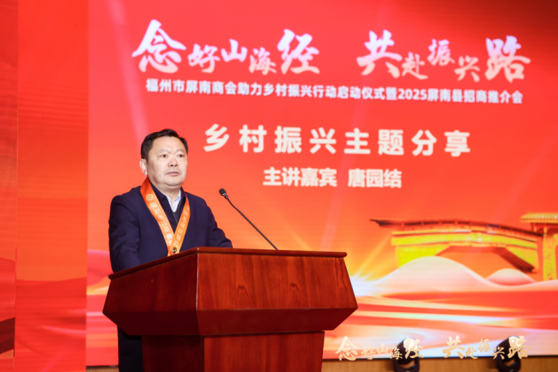 在“念好山海经,共赴振兴路”行动启动仪式上,国务院特贴专家/二级高级记者/中国新闻出版行业领军人才/农民日报原党委书记、社长/中国人民大学中国乡村振兴研究院创始人唐园结,最高人民法院刑事审判第四庭原副庭长、一级高级法官叶邵生,宁德市人民政府驻榕办主任林宗龙,福州市工商联副主席司万雷,屏南县委书记周春海,屏南县人大常委会党组书记、主任陆泽干,屏南县政协党组书记、主席张德力,中共屏南县委常委、统战部部长陈传旺,屏南县岭下乡党委书记张新建,福州市屏南商会会长黄造传一起按下了启动键,标志着福州市屏南商会助力乡村振兴行动正式启动。