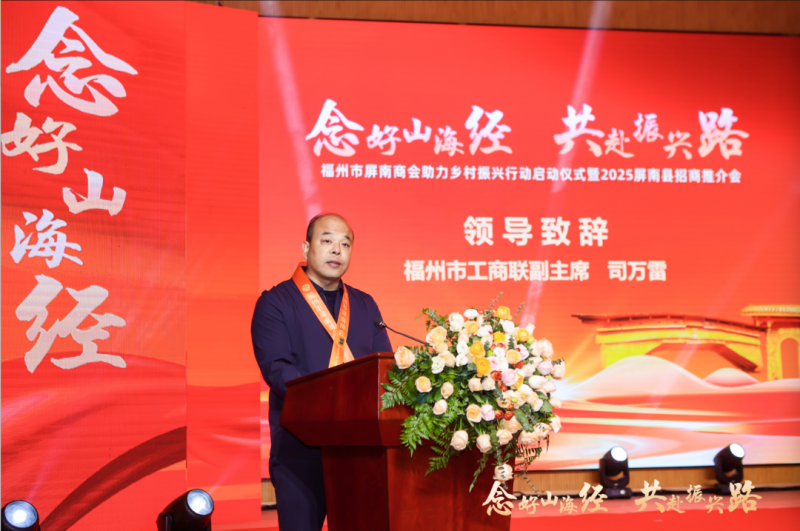 福州市工商联副主席司万雷在致辞中,不仅肯定了福州市屏南商会“念好山海经 助力振兴路”行动的意义,更细数商会自2007年创立以来,从56家创始企业壮大为超百名会员团体的奋进历程。他赞誉在榕屏商不仅是走出大山的“先行者”,更是两地协作的“践行者”。立足新征程,他进一步为商会发展指明方向:向内应“深耕服务”,增强内生凝聚力;横向须“畅通桥梁”,实现资源跨域对接;向外要“勇担责任”,将殷殷乡情转化为助推家乡共同富裕的扎实行动,打好山海协作的牌,为两地的经济与社会发展做出更大的贡献。