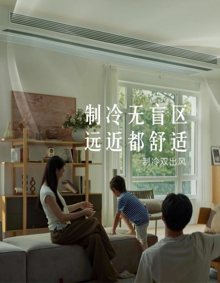 面对中央空调领域长期存在的设计局限,行业痛点亟待破解。传统中央空调因风向不可调,导致冷热不均;同时在大空间适配、避免直吹等场景中表现乏力,严重影响用户体验。基于此,美的空调以破局者之姿挺进技术“无人区”,率先推出行业首创的双出风中央空调,一举攻克传统设计桎梏,不仅重新定义舒适标准,更树立起全新的性能标杆。