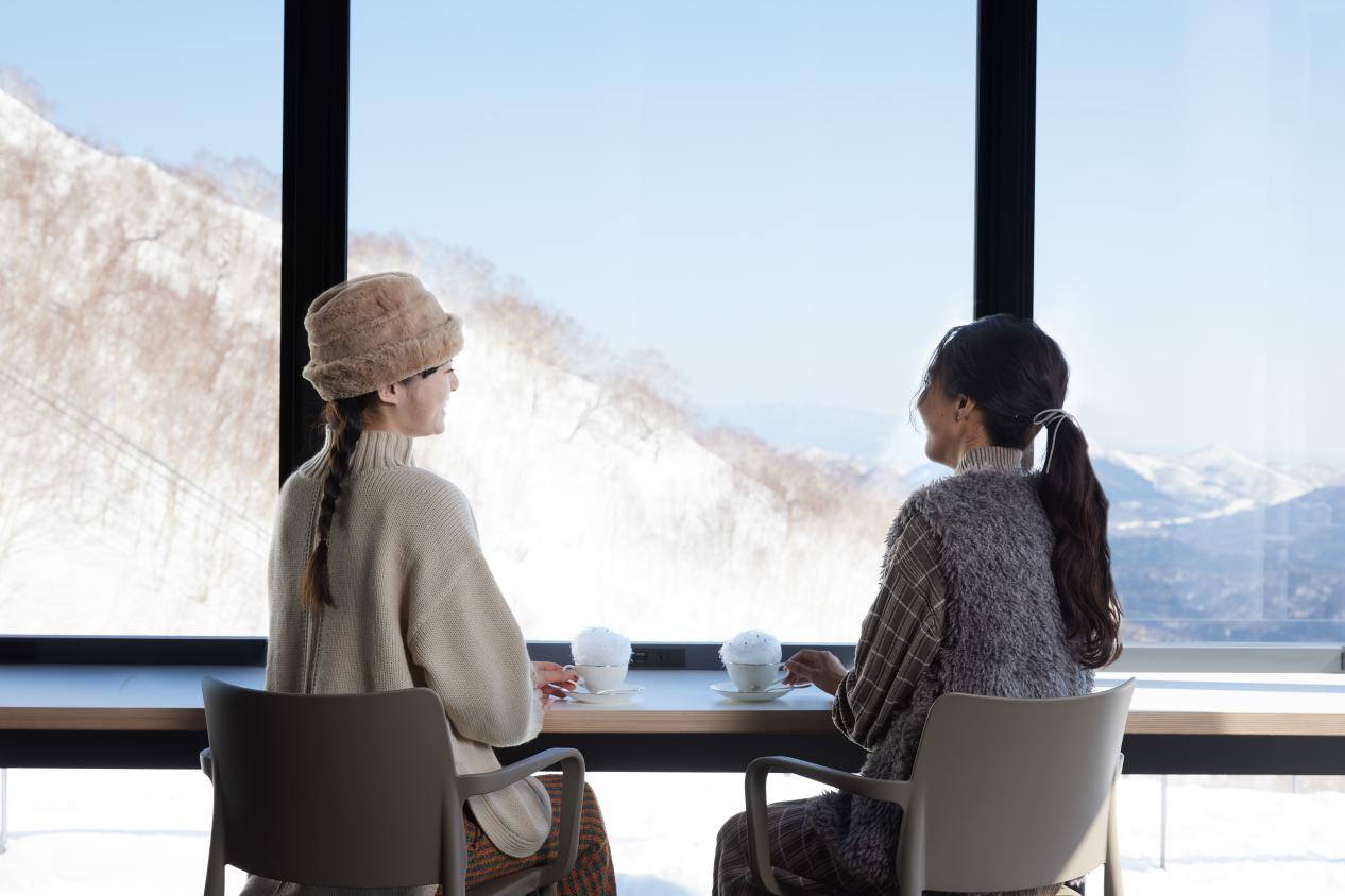 雾冰平台的室内咖啡厅kumo cafe内,提供冬季限定的奢华下午茶。茶点全部以“雾冰”“雪山”为主题设计,包含9款咸甜点与饮品。今年更推出特别甜点雾冰蒙布朗:在tomamu牛乳制成的奶香冰淇淋上,挤满白巧克力栗蓉,宛如一朵静落雪峰的小山。