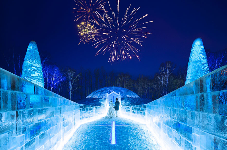 今年恰逢20周年纪念,教堂将以全新格局亮相。开放期间,除新人与宾客外,来访者亦可入内参观,近距离感受冬夜中闪耀的冰之圣殿。