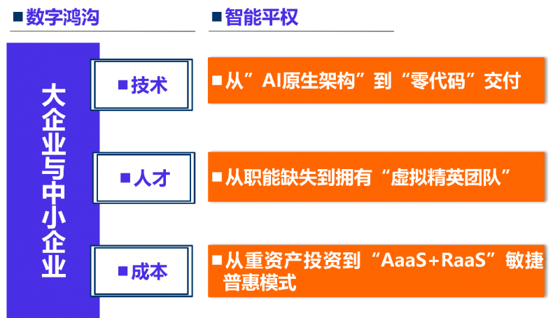 3.成本平权:采用 “aaas(智能体即服务) raas(结果即服务)” 的云服务与创新计费模式。企业无需高昂的软硬件投入,按智能体实际完成的“有效劳动”付费,只为创造的真实价值买单,实现“用得起”的精准普惠。