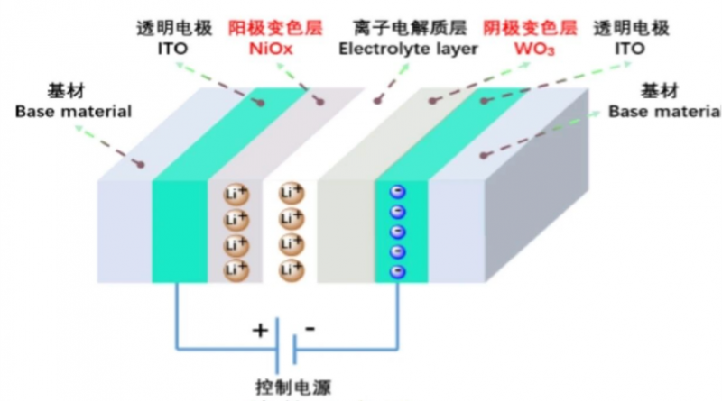 ec电致变色技术的工作逻辑与pdclc存在本质不同,其核心是可逆的化学反应,类似锂电池的充放电过程。这一原理使其具备能耗略低的特点,但同时也决定了其存在特定的寿命特性限制。