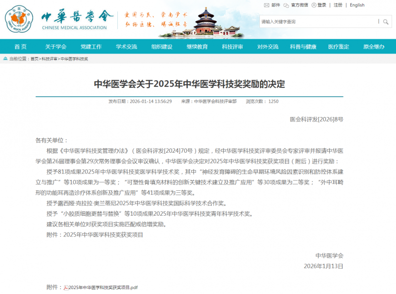 新闻行业垂直网站2025年1月14日,中华医学会公布《关于2025年中华医学科技奖奖励的决定》,对在医学科技领域作出突出贡献的项目予以表彰。