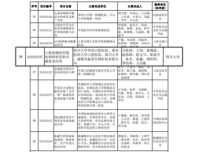由四川大学华西口腔医院万乾炳教授团队领衔,联合成都贝施美生物科技有限公司等单位共同完成的“口腔软硬组织修复材料研发和关键技术应用”项目,凭借其突破性成果与临床转化价值,荣获中华医学科技奖医学科学技术奖二等奖。这一荣誉不仅标志着我国口腔医学领域产学研医协同创新迈上新台阶,更彰显了贝施美作为行业创新标杆的核心价值。