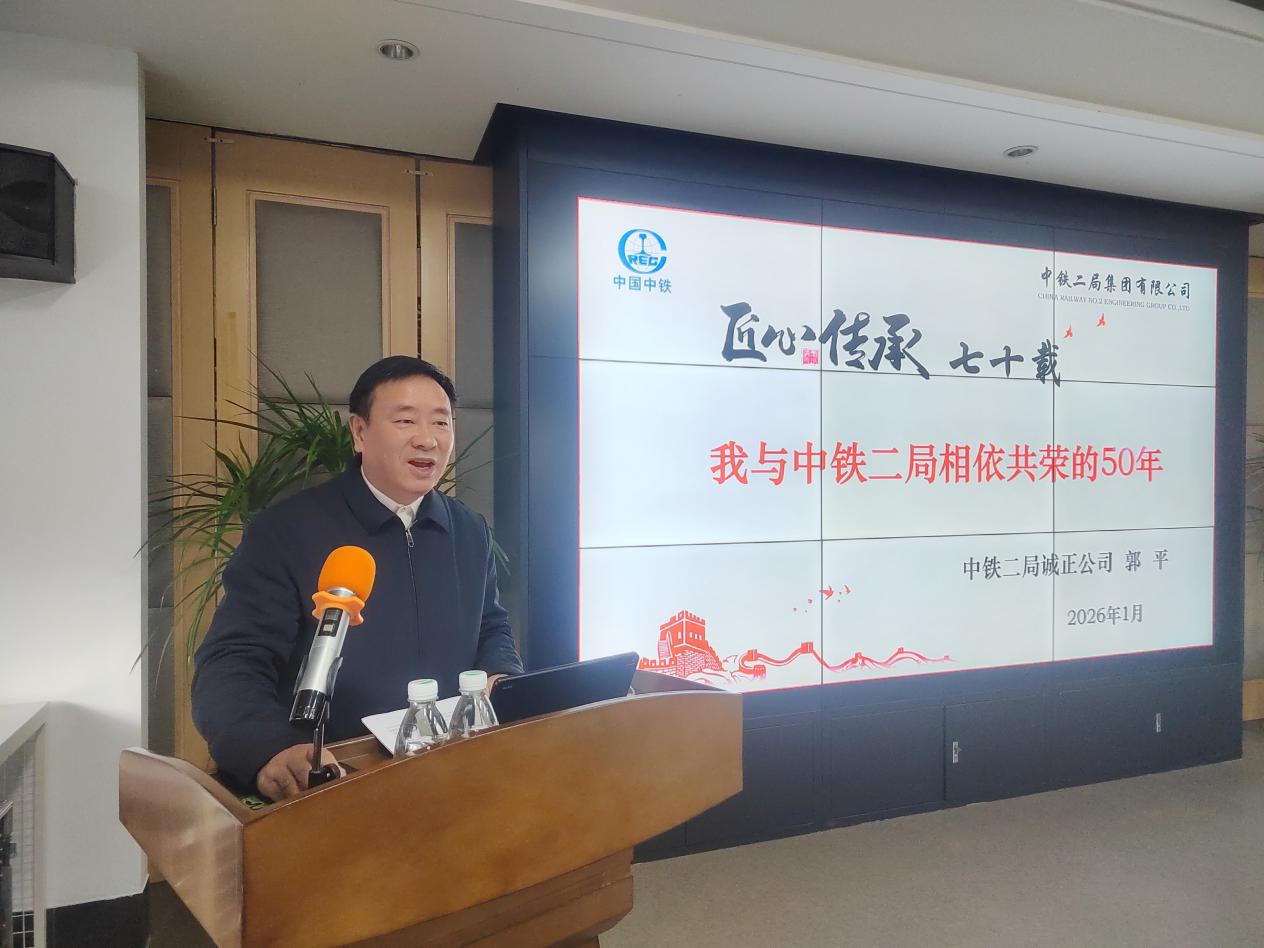 宣讲会上,郭平以《传承匠心七十载--我与中铁二局相依共荣的50年》为题,结合自身成长经历与工程实践,生动诠释了工匠精神的时代内涵。他分享了在青藏高原攻克长大隧道测量难题、在异国他乡保障“一带一路”项目精准实施的艰辛历程。其《高速铁路长大隧道平面控制测量关键技术研究》等代表性成果,获得科技成果奖、国家专利、省部级工法近50项,在核心期刊发表论文20余篇,主编专著1部,斩获省部级科学技术奖3项,成为行业技术标杆。