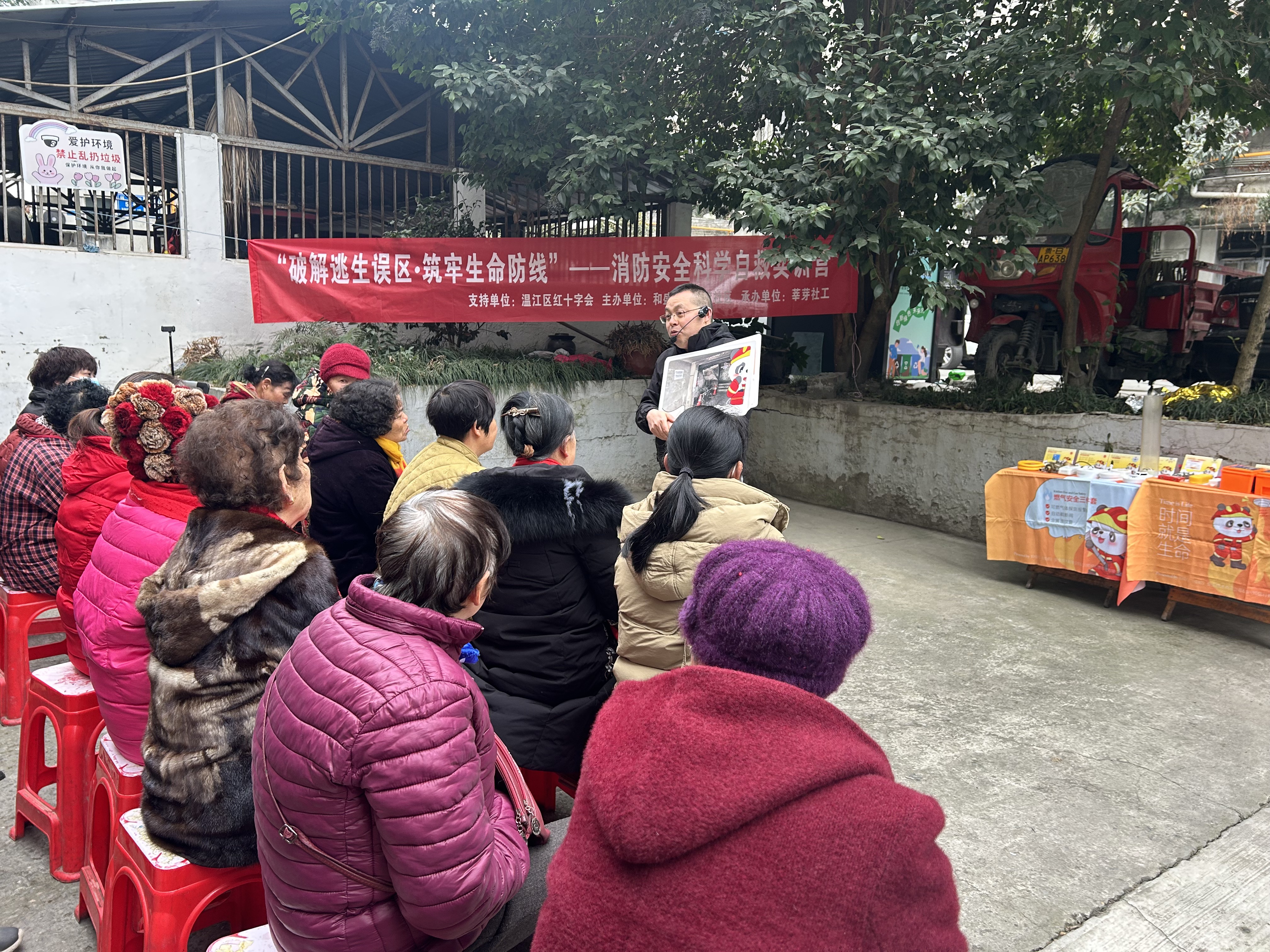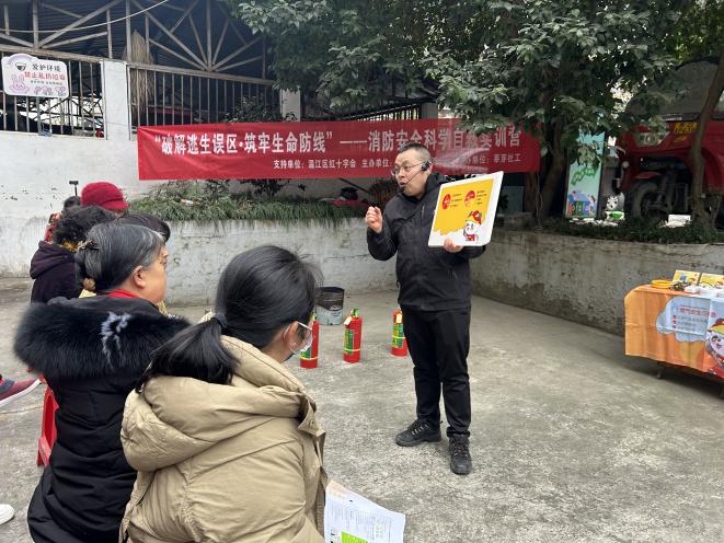 新闻行业垂直网站为进一步增强公众消防安全意识,提升火灾自防自救能力,筑牢社区与家庭安全防线,2026年1月30日,在温江区红十字会的支持下,舒家渡社区联合莘芽社工共同组织开展了一场以“破解逃生误区·筑牢生命防线”为主题的消防安全科学自救实训营。本次活动在辖区内的三无院落前进苑小区开展,旨在通过“理论授课 情景推演 实操体验”的立体化教学模式,引导居民们走出传统逃生误区,掌握科学自救技能,共计近30人参与。