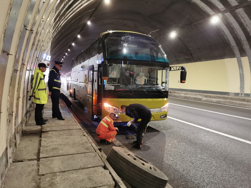 渝蓉高速隧道客车爆胎 交通执法高效救援外籍游客